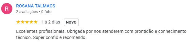 São mais de 60 avaliações 5 estrelas no Google. Veja abaixo alguns depoimentos.